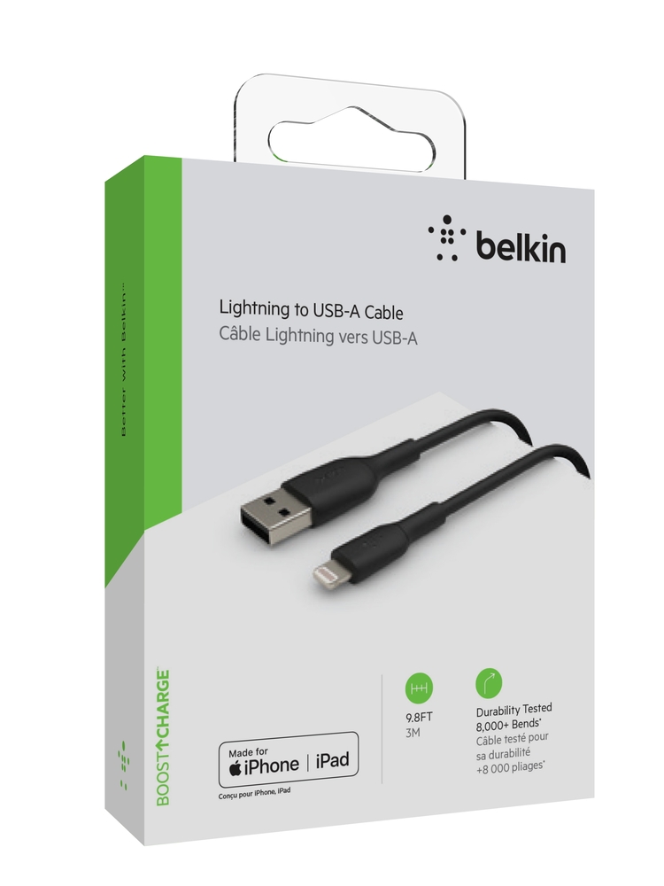 Belkin BOOST CHARGE USB-A to Lightning Cable, PVC – 3M – Black