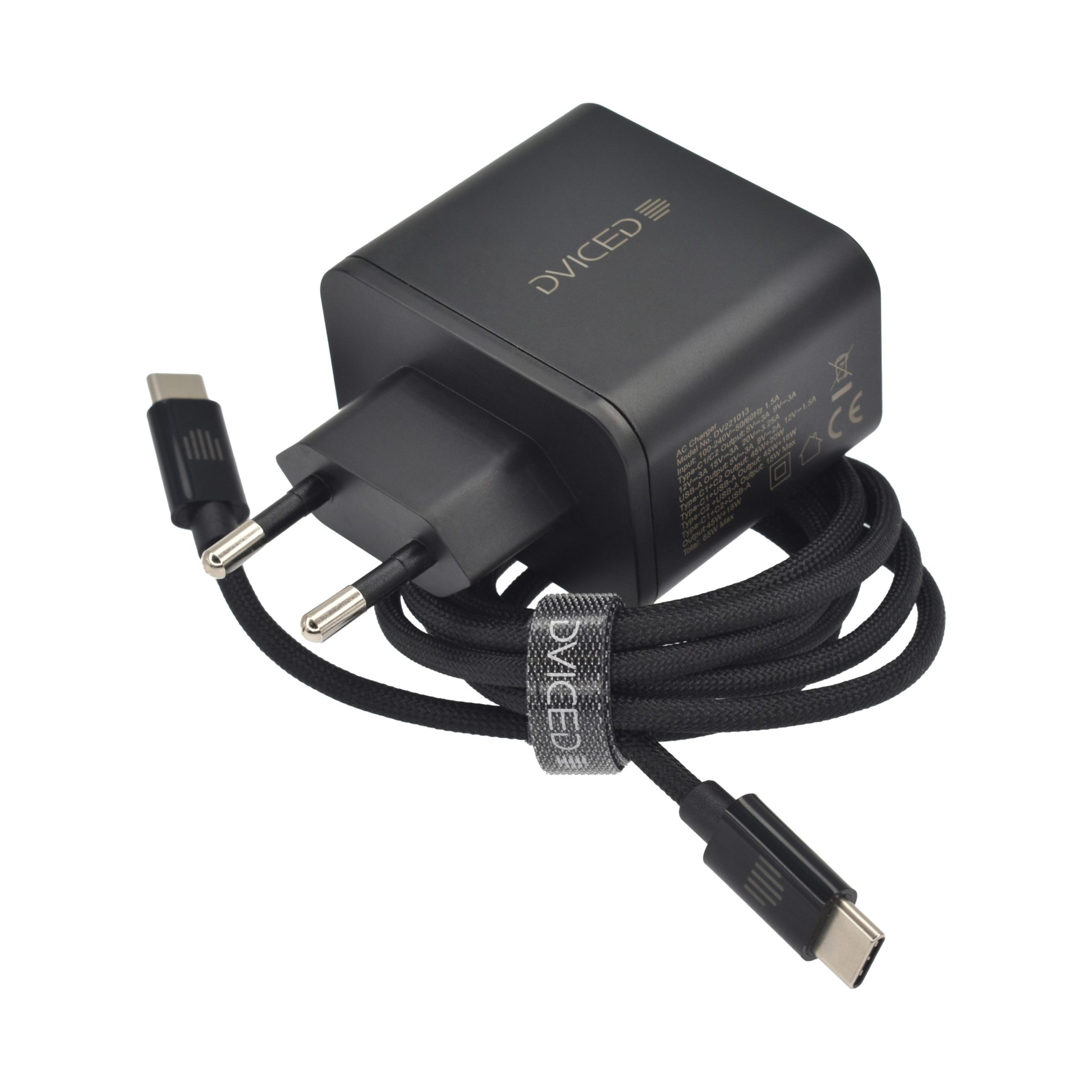 Dviced Wall charger 65W GaN 1 USB-A, 2 USB-C EU w cable – Black