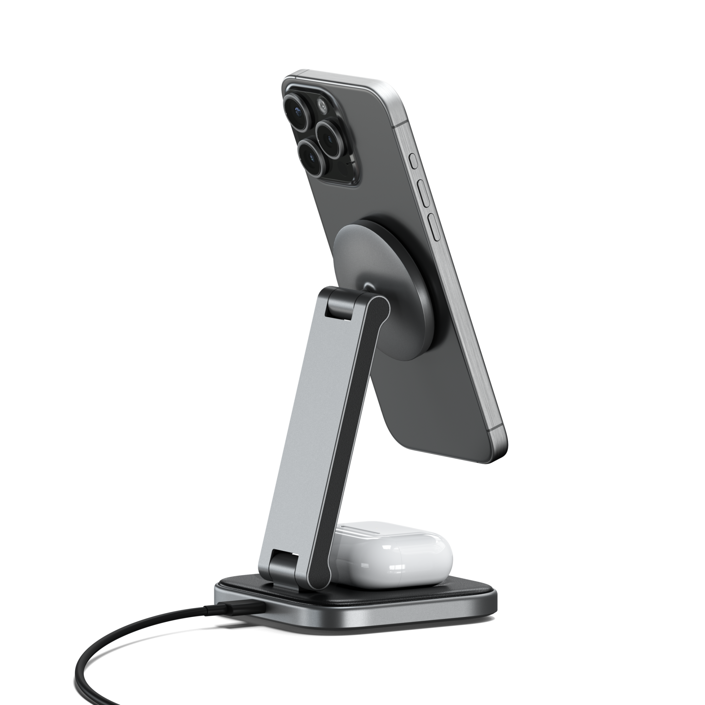 Satechi 2-in-1 Foldable Qi2 Wireless Charging Stand – Space Gray