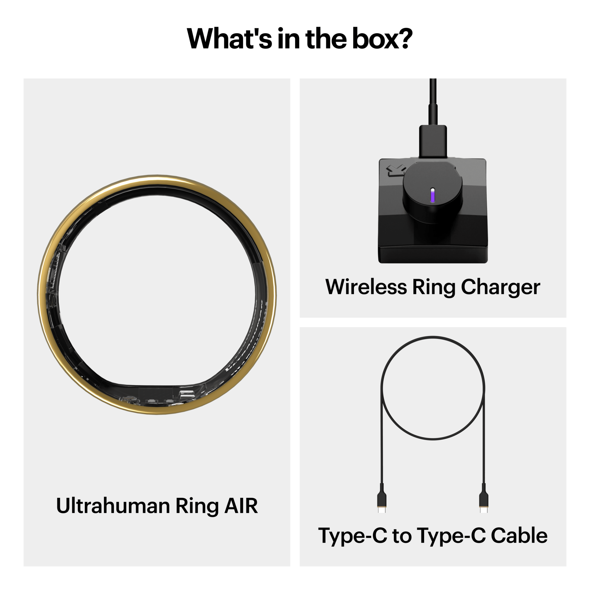 Ultrahuman Ring Air – Smart Ring, Charger, USB Cable / Size-10- Air_Gold
