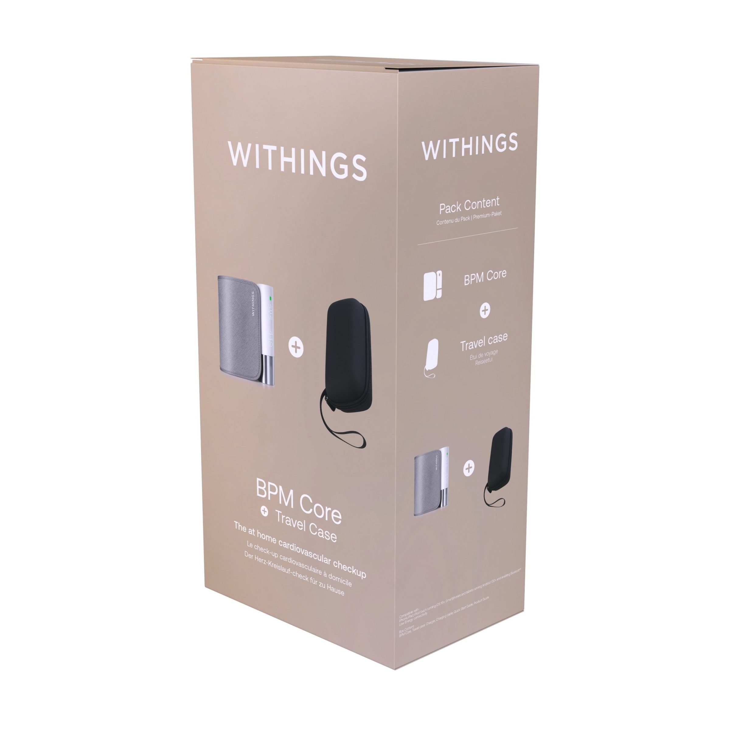 Withings Blood Pressure Monitor Core w Wifi sync, Led screen, ECG sensor, Digital stethoscope (including Travel case for BPM Core)