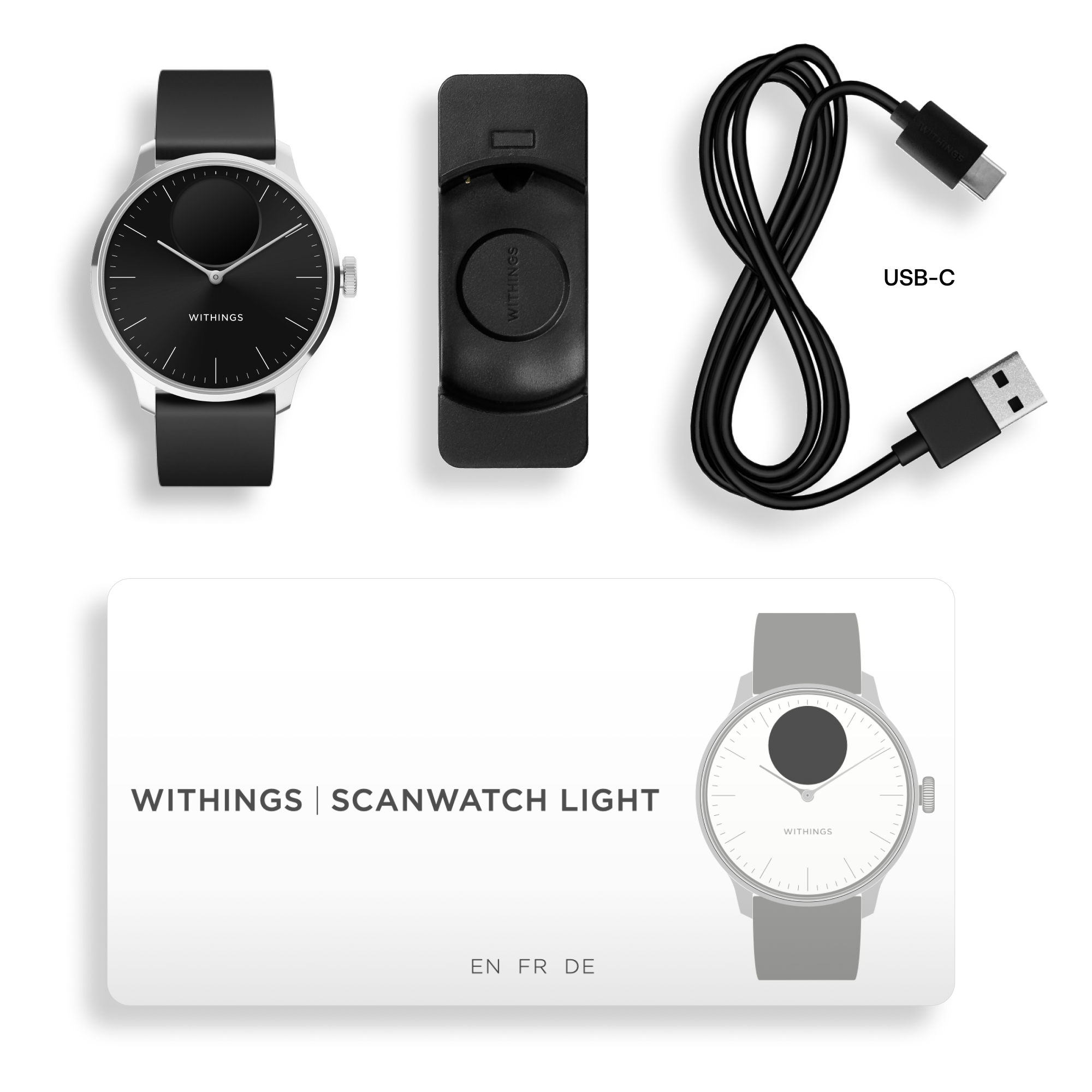 Withings Scanwatch Light / 37mm (Activity, Sleep Tracker / Stainless steel, fkm wristband, sapphire glass) – Black
