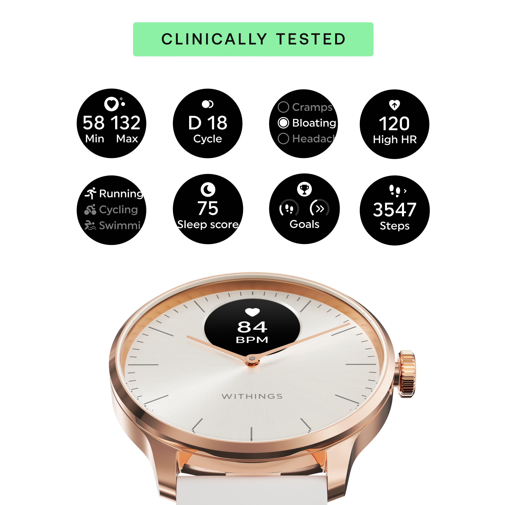 Withings Scanwatch Light / 37mm (Activity, Sleep Tracker / Stainless steel, fkm wristband, sapphire glass) – Sand
