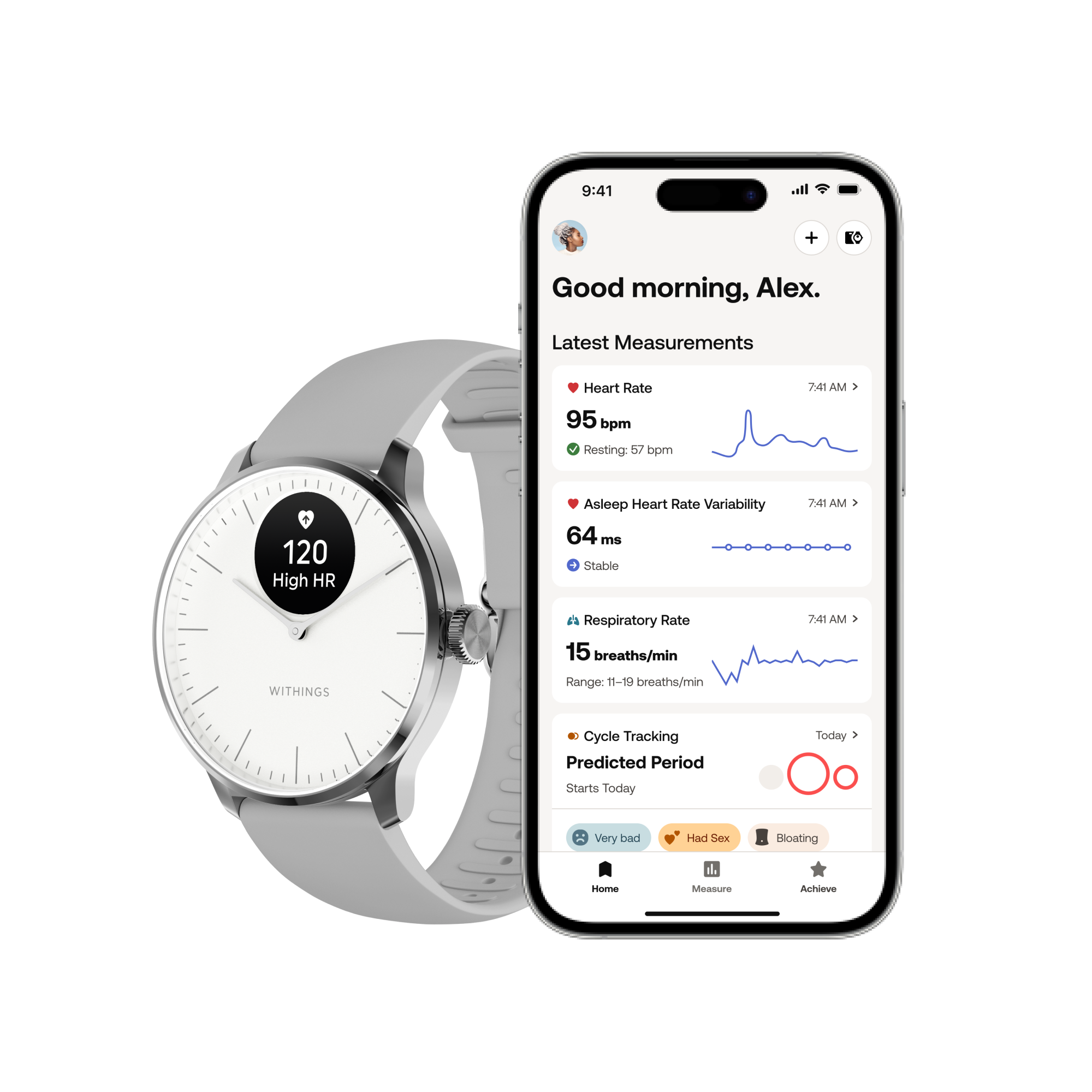 Withings Scanwatch Light / 37mm (Activity, Sleep Tracker / Stainless steel, fkm wristband, sapphire glass) – White